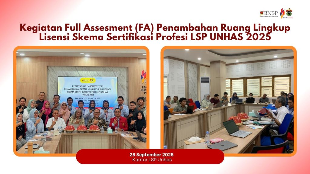 • LSP Unhas Laksanakan Witness Uji Kompetensi oleh BNSP pada 28 Skema Sertifikasi